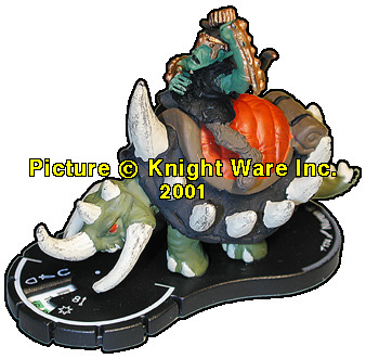 | NAME: NUREN THE TOOTH RANK: PROMO L5 FRQ: LE 5 FACTION: ORC RAIDERS UNIT COST: 38 #: 174 RANGE: 8 ARC: 180 |