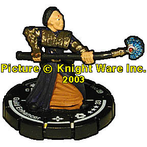 | NAME: Guild Enhancer RANK: Tough FRQ: 4 FACTION: Atlantean Empire SUB FACTION: Golemkore FIG#: 60 FIG COST: 33 SPEED TYPE: Boot ATTACK TYPE: Wand ATTACK BONUS: 1 DEFENSE TYPE: Immune DAMAGE TYPE: Starburst RANGE: 12 (2 Targets) RANGE DAMAGE: 3 FRONT ARC: 180 |