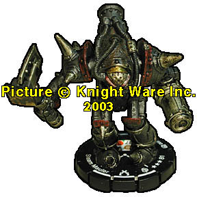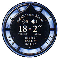| NAME: Steam Mauler RANK: Tough FRQ: 4 FACTION: Black Powder Revolutionaries SUB FACTION: Bloody Thornes FIG#: 66 FIG COST: 81 SPEED TYPE: Boot ATTACK TYPE: Bow ATTACK BONUS: 0 DEFENSE TYPE: Shield DAMAGE TYPE: Golem RANGE: 12 (2 Targets) RANGE DAMAGE: 2 FRONT ARC: 90 |