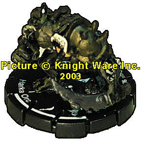 | NAME: Harka Orc RANK: Standard FRQ: 4 FACTION: Orc Khans SUB FACTION: Broken Tusk FIG#: 86 FIG COST: 30 SPEED TYPE: Boot ATTACK TYPE: Sword ATTACK BONUS: 0 DEFENSE TYPE: Shield DAMAGE TYPE: Starburst RANGE: 0 (1 Target) RANGE DAMAGE: 0 FRONT ARC: 90 |