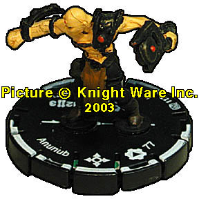 | NAME: Anunub RANK: Unique FRQ: 6 FACTION: Atlantean Empire SUB FACTION: Golemkore FIG#: 117 FIG COST: 77 SPEED TYPE: Boot ATTACK TYPE: Wand ATTACK BONUS: 2 DEFENSE TYPE: Immune DAMAGE TYPE: Starburst RANGE: 12 ( 2 Targets) RANGE DAMAGE: 3 FRONT ARC: 180 |