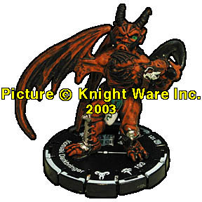 | NAME: Kossak Darkbringer RANK: Unique FRQ: 6 FACTION: Dark Crusaders SUB FACTION: Order of Vladd FIG#: 121 FIG COST: 193 SPEED TYPE: Wing ATTACK TYPE: Sword ATTACK BONUS: 0 DEFENSE TYPE: Immune DAMAGE TYPE: Starburst RANGE: 0 (1 Target) RANGE DAMAGE: 0 FRONT ARC: 180 |