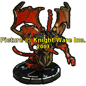| NAME: Varatrix RANK: Unique FRQ: 6 FACTION: Solonavi SUB FACTION: None FIG#: 130 FIG COST: 156 SPEED TYPE: Wing ATTACK TYPE: Sword ATTACK BONUS: 2 DEFENSE TYPE: Shield DAMAGE TYPE: Starburst RANGE: 8 (1 Target) RANGE DAMAGE: 3 FRONT ARC: 135 |