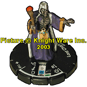| NAME: LORD CHAOS RANK: PROMO L6 FRQ: LE 6 FACTION: MAGE SPAWN UNIT COST: 58 FIG#: 119 RANGE: 8 ARC: 90 |