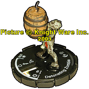 | NAME: DETONATING ZOMBIE RANK: TOUGH FRQ: 5 FACTION: BLACK POWDER REBELS/ NECROPOLIS SECT UNIT COST: 25 FIG#: 78 RANGE: 6 ARC: 90 |