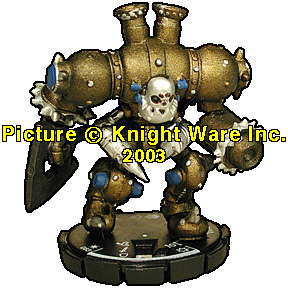 | NAME: WRATH GOLEM RANK: STANDARD FRQ: 4 FACTION: ATLANTIS GUILD/ BLACK POWDER REBELS UNIT COST: 64 FIG#: 83 RANGE: 10 ARC: 90 |