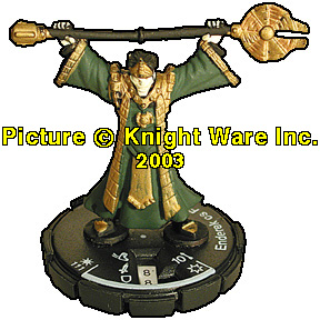 | NAME: ENDEREK OS FENA RANK: PROMO L6 FRQ: LE 6 FACTION: ELEMENTAL LEAGUE/ ATLANTIS GUILD UNIT COST: 29 FIG#: 111 RANGE: 10 ARC: 90 |