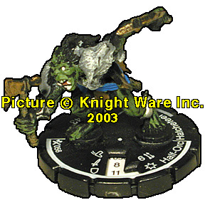 | NAME: Half-Orc Hatcheteer RANK: Standard FRQ: 3 FACTION: Orc Raiders UNIT COST: 43 FIG#: 56 RANGE: 6 (2 Targets) ARC: 180 |