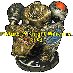 | NAME: Shield Golem RANK: Tough FRQ: 5 FACTION: Atlantis Guild/ Knights Immortal UNIT COST: 74 FIG#: 63 RANGE: 0 ARC: 90 |