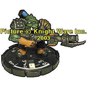 | NAME: Fuser Orc RANK: Standard FRQ: 4 FACTION: BP Rebels /Orc Raiders UNIT COST: 55 FIG#: 74 RANGE: 10 ARC: 90 |