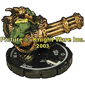 | NAME: Orc Blaster RANK: Weak FRQ: 3 FACTION: BP Rebels /Orc Raiders UNIT COST: 38 FIG#: 82 RANGE: 6 (4 Targets) ARC: 180 |