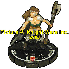 | NAME: Queen Corella RANK: Unique FRQ: 6 FACTION: BP Rebels/Hero UNIT COST LEVEL 5: 74 UNIT COST LEVEL 4: 55 UNIT COST LEVEL 3: 46 UNIT COST LEVEL 2: 36 UNIT COST LEVEL 1: 32 FIG#: 88 RANGE: 0 ARC: 180 |