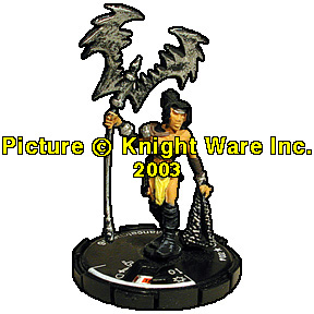 | NAME: AMAZON MANCATCHER RANK: WEAK FRQ: 1 FACTION: BLACK POWDER REBELS UNIT COST: 16 FIG#: 22 RANGE: 0 ARC: 90 |