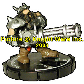 | NAME: DWARVEN ROTARY FUSER RANK: TOUGH FRQ: 4 FACTION: BLACK POWDER REBELS UNIT COST: 38 FIG#: 60 RANGE: 10 (2 TARGETS) ARC: 90 |