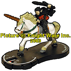 | NAME: UNICORN BLADESMAN ON UNICORN RANK: TOUGH FRQ: 5 FACTION: ELEMENTAL LEAGUE UNIT COST: 53 FIG#: 87 RANGE: 0 ARC: 180 |
