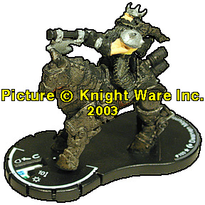 | NAME: DWARVEN MOUNTED FUSER ON STEAM HORSE RANK: WEAK FRQ: 3 FACTION: BLACK POWDER REBELS UNIT COST: 41 FIG#: 103 RANGE: 10 ARC: 180 |