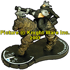 | NAME: DWARVEN MOUNTED FUSER ON STEAM HORSE RANK: TOUGH FRQ: 5 FACTION: BLACK POWDER REBELS UNIT COST: 50 FIG#: 105 RANGE: 10 ARC: 180 |