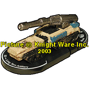 | PILOT NAME: N/A TYPE: Long Tom Artillery RANK: Green FRQ: 2 CLAN: Bannson's Raiders FIG#: 40 FIG COST: 55 DAMAGE TYPE: Ballistic RANGE: 4/16 (40) - 1 Target(s) ARC: 90 |