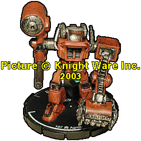 | NAME: N/A 'MECH TYPE: AgroMech MOD-B RANK: Elite FRQ: 5 CLAN: Dragon's Fury FIG#: 69 FIG COST: 107 PRIMARY DAMAGE: Melee PRIMARY RANGE: 0/0 - 1 Target SECONDARY DAMAGE: Ballistic SECONDARY RANGE: 2/12 - 1 Target ARC: 180 VENT: 3 |